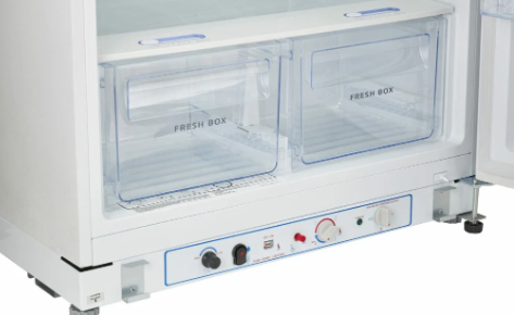 This unit features a massive 4.9 cu. ft. freezer—providing more frozen storage than any other gas fridge on the market. Available in White or a sleek Stainless Steel finish, it comes equipped with a built-in Carbon Monoxide (CO) safety monitor and an automatic shut-off, ensuring your family stays safe while enjoying the comforts of a high-capacity kitchen.
