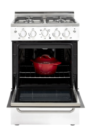 The Unique Prestige 20" Convection Gas Range delivers sleek, modern design and high-performance cooking to even the most condensed kitchen spaces. Perfectly sized for condos, cabins, and tiny homes, this compact range ensures you don't have to compromise on features like convection technology and intense searing capabilities.
