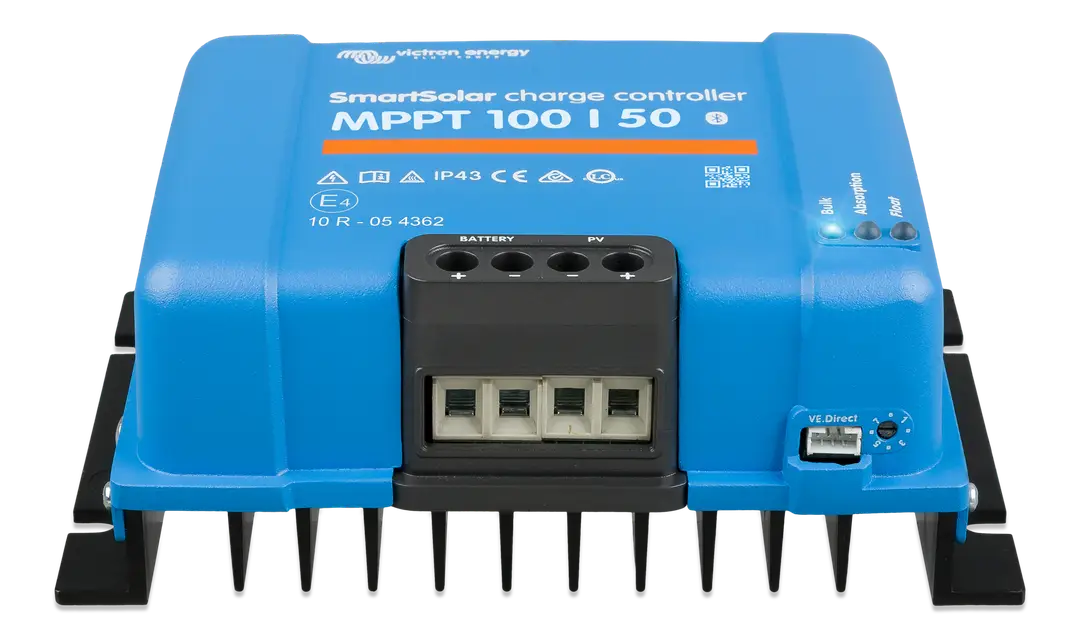 The Victron Energy SmartSolar MPPT 100/50 is a high-capacity 50-amp charge controller engineered to harvest maximum energy from your solar array. With integrated Bluetooth Smart, you can setup, monitor, and update this controller wirelessly via the VictronConnect app. Ideal for larger mobile systems, marine applications, and off-grid cabins, its ultra-fast MPPT tracking delivers superior performance in all weather conditions.